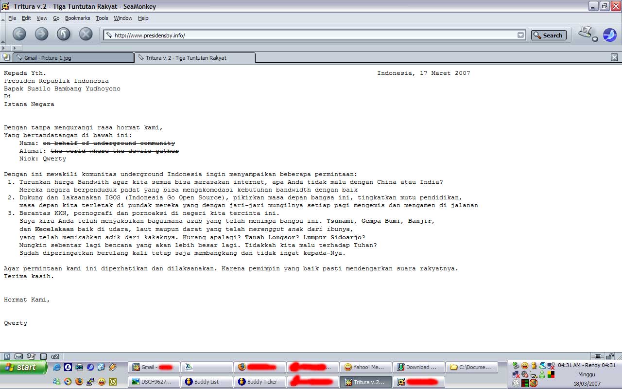 Nick: QwertyDengan ini mewakili komunitas underground Indonesia ingin menyampaikan beberapa permintaan: